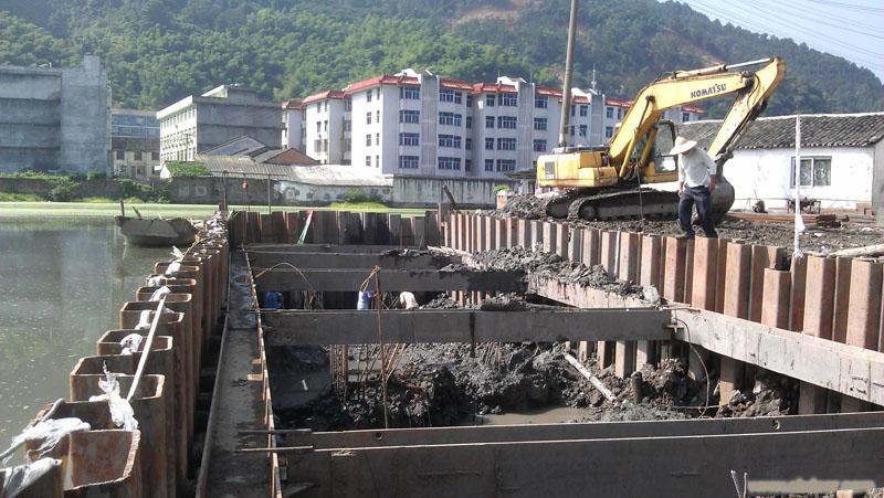 c、共连。产生的原因:钢板桩倾斜弯曲,使槽口阻力增加;处理方法有:发生板桩倾斜及时纠正;把相邻已打好的桩用角铁电焊临时固定。